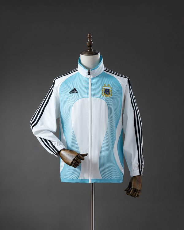 The 2005–2006 period led into a memorable World Cup campaign for Argentina. The national team reached the quarter-finals of the 2006 FIFA World Cup with strong performances. Argentina was known for technical quality and attacking football during this era. Legendary players such as Hernán Crespo played a key role up front. Young Lionel Messi also began to make a global impact at this time. Juan Román Riquelme controlled games with creativity and vision. This era is remembered for flair and talent. This windbreaker reflects Argentina’s footballing elegance and tradition.