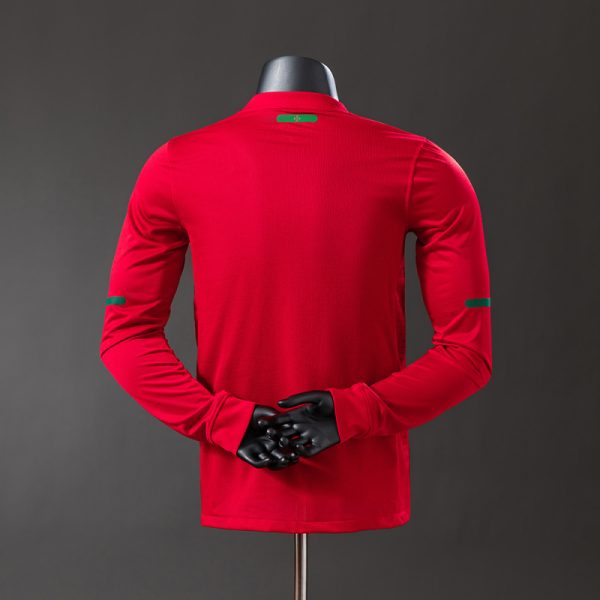 The Long Sleeve Portugal Home Jersey 2010 is sleek and stylish — deep red, subtle green trim, and pure Lusitanian pride. FREE PRINTING (name + number) included, long or short sleeve available. classicretrokit.com, trusted by 10,000+ collectors, brings this beauty back with vintage flair. The long sleeve version feels extra elite — classy and timeless.