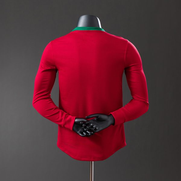 The Long Sleeve Portugal Home Jersey 2012 is luxury in red form — that deep burgundy shade with sleek green touches is unbeatable. FREE PRINTING (name + number) included, because every jersey should tell your story. classicretrokit.com, with 10,000+ loyal customers, delivers this vintage masterpiece with modern quality. The long sleeve version gives it pure legacy energy.
