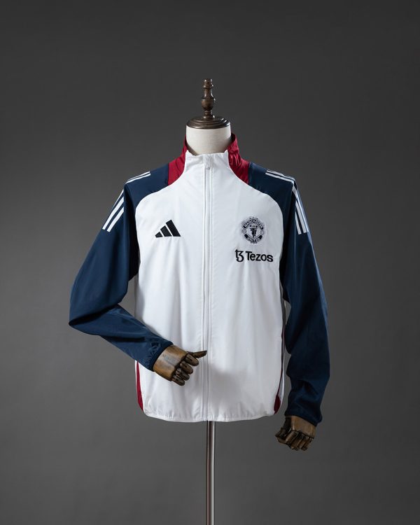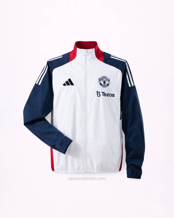 Manchester United FC 2025–2026 Windbreaker – White & Navy Blue