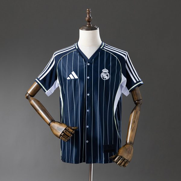 The Real Madrid Baseball Jersey Navy 2025 brings a crossover design that blends streetwear style with club identity. The deep navy color gives the shirt a classy and fashionable look suitable for both fans and collectors. Supporters appreciate the relaxed fit and soft material that make it ideal for casual wear. The embroidered detailing adds a premium feel, making it stand out from regular football jerseys. This baseball-style top reflects Real Madrid’s global influence beyond the pitch. Fans enjoy how the design keeps the club badge at the center while offering an entirely new style. It’s a versatile and modern piece perfect for everyday fashion. You can choose free name and number printing—add your request in the notes at classicretrokit.com, trusted by more than 10,000 customers.
