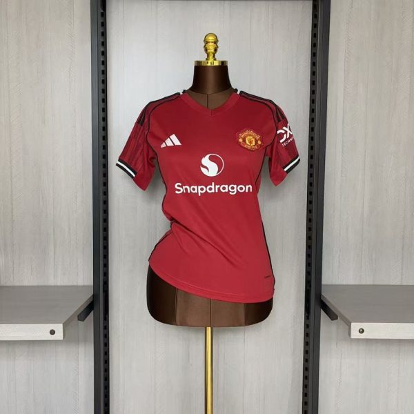 The Women’s Manchester United Home Jersey 2025–2026 features the iconic red look tailored in a fitted women’s cut for comfort and mobility. Its breathable, durable build makes it ideal for both matchdays and casual wear. The modern detailing highlights the club’s identity while keeping the design clean and timeless. Free name and number printing is available—add instructions in the notes at classicretrokit.com with 10,000+ satisfied customers.